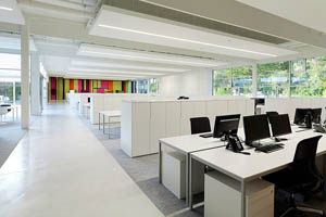 透過點(diǎn)、線、面的延伸與連結(jié),形構(gòu)出開闊的空間表情,在區(qū)域之間的界定上,